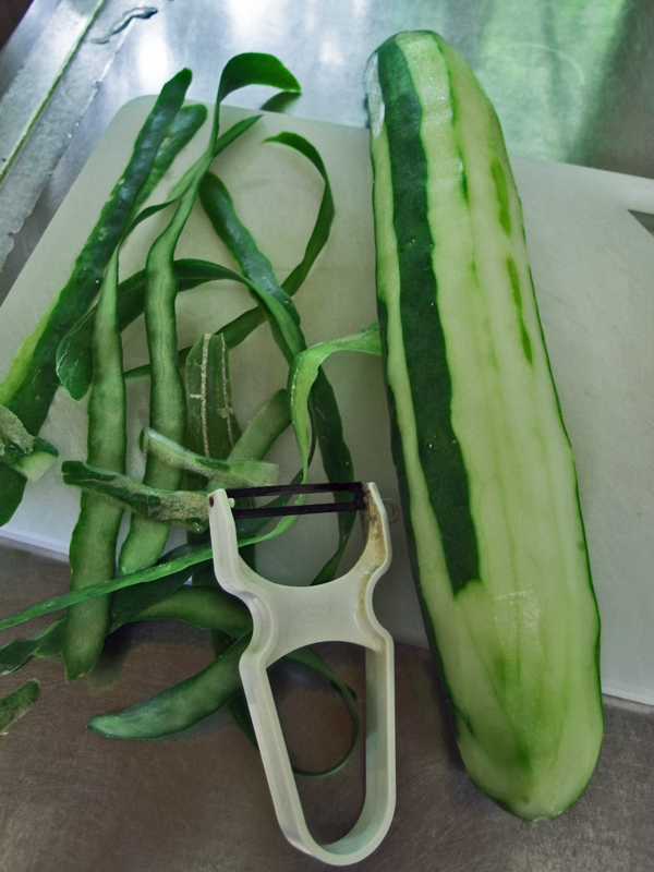 大きい胡瓜は皮も厚くなっているのでむいて使います。