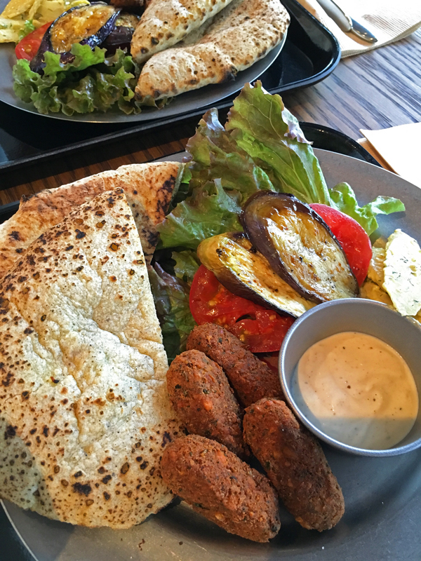 ベジタブルバーガー、ファラフェル、、、 ベジタリアンの私に食べれそうなものが沢山あります☆ お食後に甘いケーキもいいな~、色々目移りしましたが、結局フェラフェルと飲み物のセットにしました。