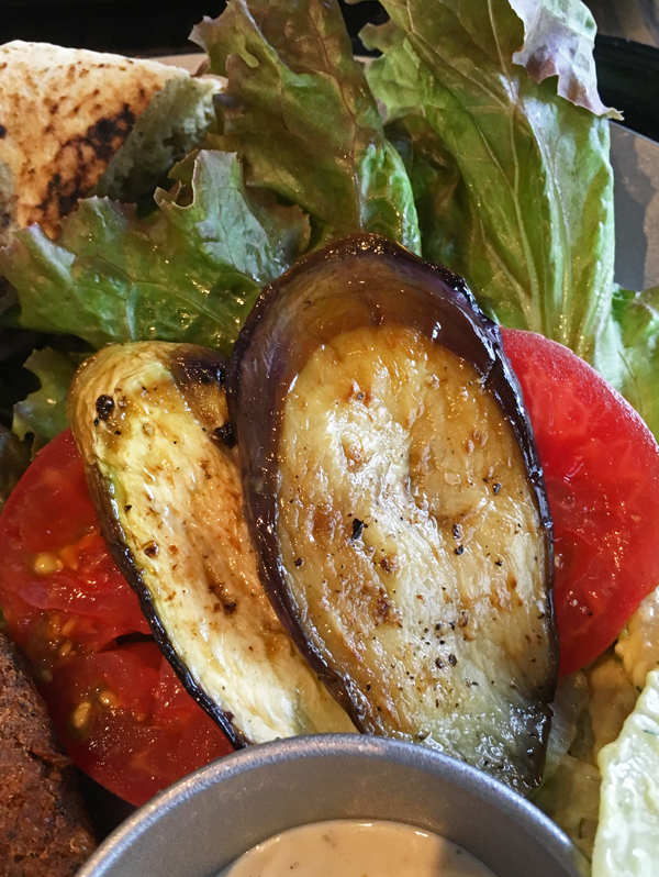 お友達はこのお店は3度目だそうですが、何時も迷って、でも結局はファラフェルにしてしまうとの事。昔住んでいたエジプトでよく食べた懐かしい味ファラフェル。日本でファラフェルを食べるのは私はこれが初めて。エジプトでは庶民のスナックなのでこんな上品に盛られてはいません。ピタパンにフェラフェルとレタス、胡瓜をギューギューに詰めて、タヒーナソースをかけてかぶりついて食べます。