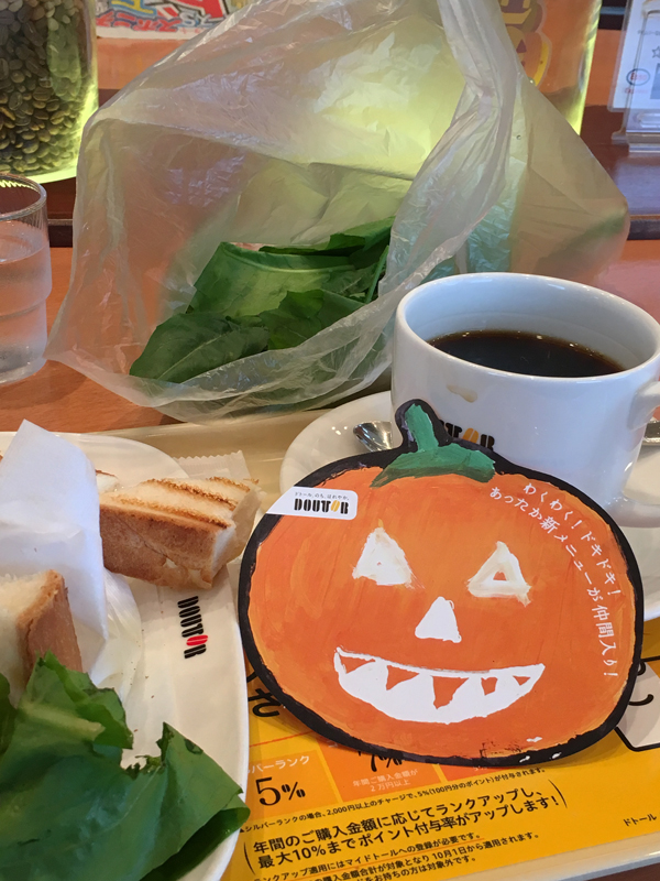 街はハロウィンの飾りで一杯です。コーヒーショップのテーブルの上にも・・・