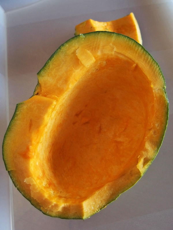 小さいのを2~3個食べただけなので、総収穫量は10個足らず・・・昨年の大収穫が夢のような気がします。本当は、多分、この倍以上あったのですが消えてしまったのです。それも大きいのから順に。Mさんが「もう少しでヘタが枯れて収穫の時だから」と、畑へ行くと、採り頃のはなく未熟のものばかり・・・ カラスやハクビシンが食べたのなら食べカスがあるはずなのに・・・何もない。やっと気づいた私達は南瓜に番号を書いたリボンを付けてみました。それ以後は消える事はなかったのですが、私達が収穫できたのは今年はこれだけでした。