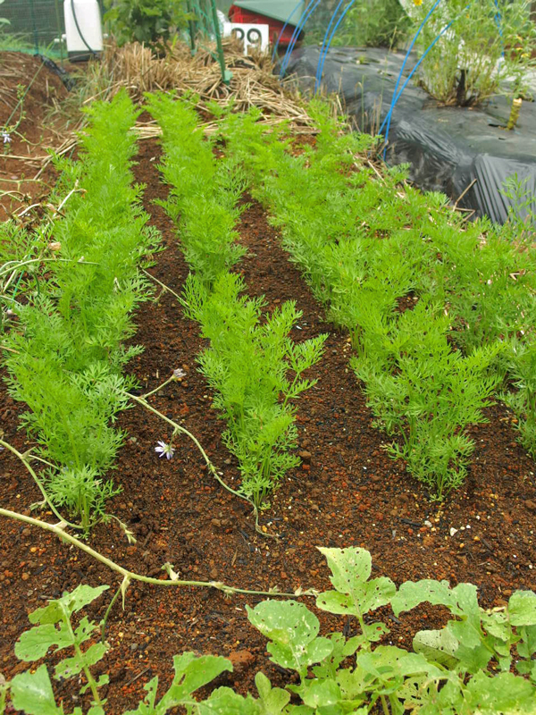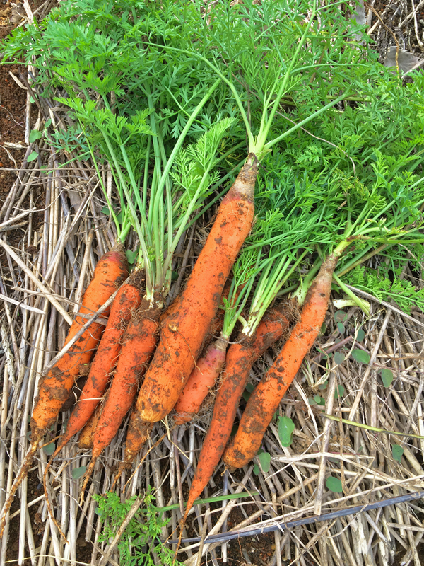 4月に種をまいてから4か月、8月から収穫し始めて、まだこんな風に畑に残っているのです。使う分だけ間引きながら使っているのですが、成長の遅いものがだんだん大きくなって来るので、常にそこそこの人参が収穫できるのです☆