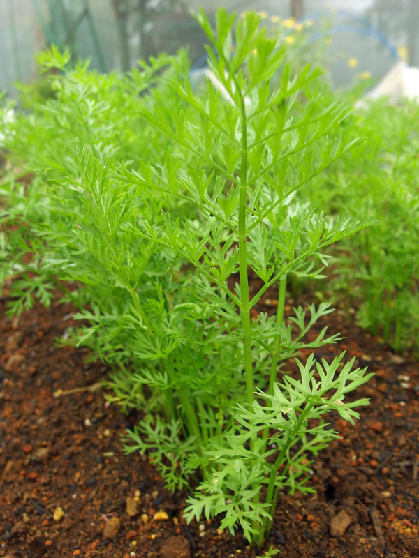 「人参は芽が出ればほぼ成功、初期成長は遅いけれど、後は間引くくらいで育てるのが難しい野菜ではない」と言うのは本当でした。 4月末に播いた種が芽を出したのは9日目。 種を播いてから1ヶ月ちょっと過ぎた6月初めの人参は・・・