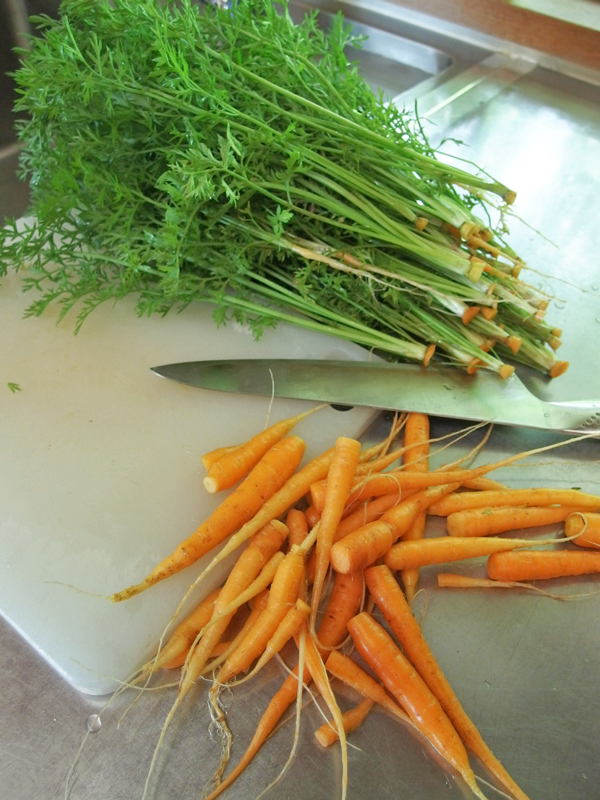 葉付き人参は葉と根に切り離します。