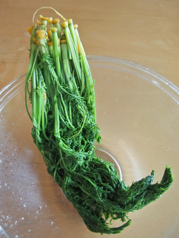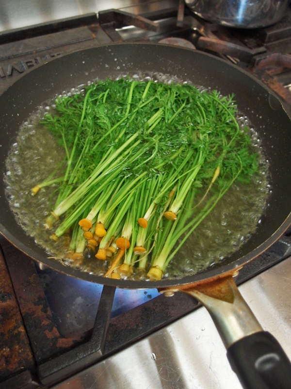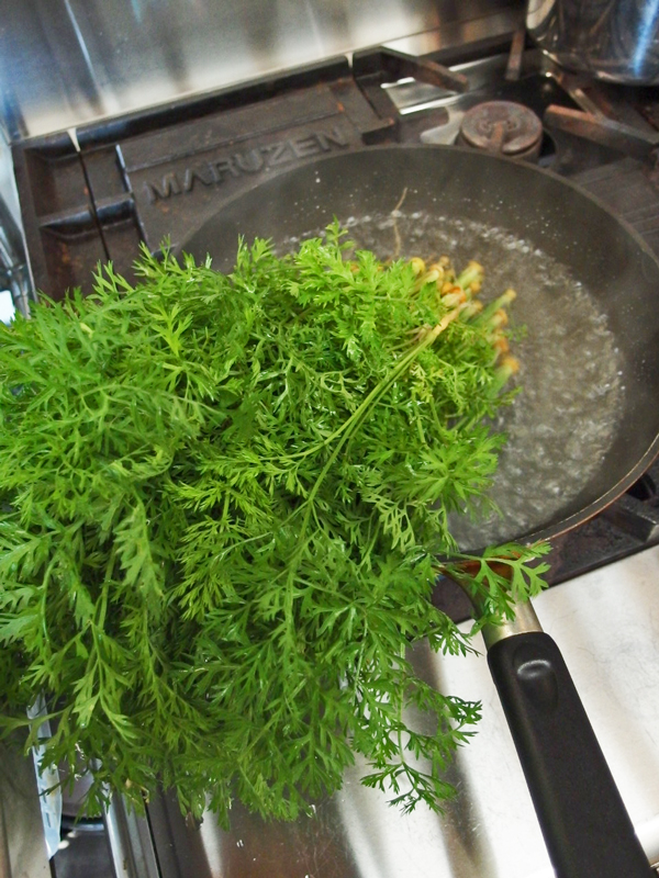 葉は塩を入れた熱湯で茹で・・・