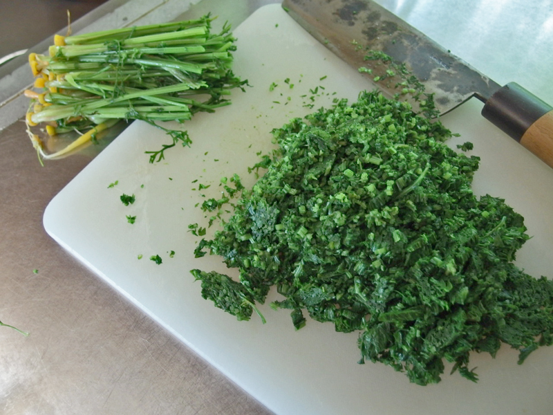 柔らかい部分をみじん切りにします。