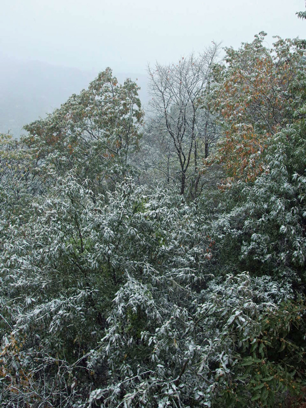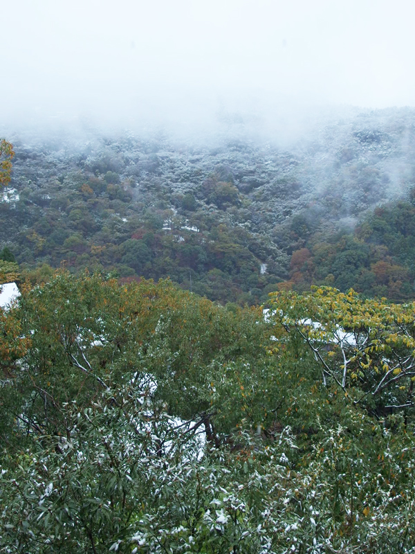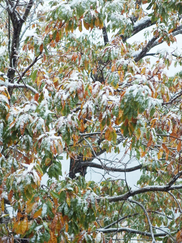 コナラの葉は黄色く紅葉し始めたばかりなのに、もう雪がやって来てビックリしている様子。こんな早い初雪は私も初めて、私もビックリです☆
