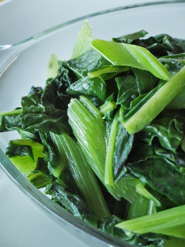 茎はサクサク、葉も肉厚で、本当に美味しい青菜☆ 私はこの炒め蒸しを、ブランチの卵もどき料理や、ソイ・ソーセージと一緒にパンケーキに添えて食べるのがお気に入りです。