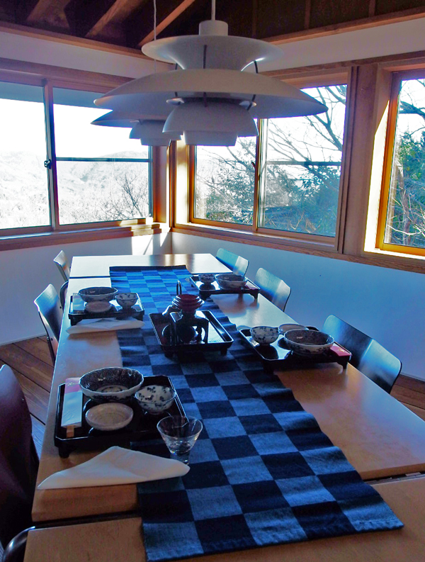 お客様到着後、桜湯でしばらくお話しして・・・ いよいよお食事、お重箱をテーブルに並べました。