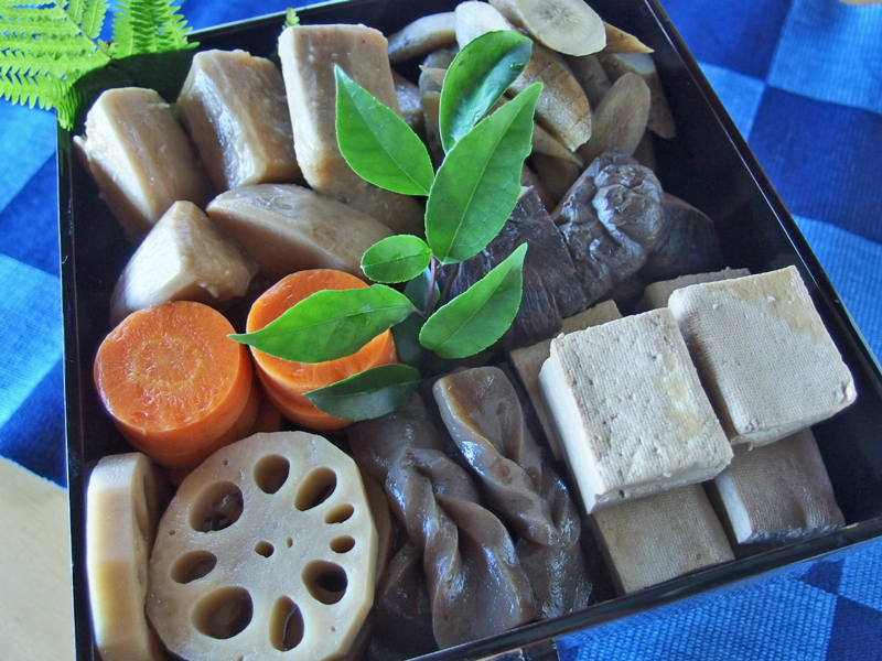 お煮しめのお重:亡き母から教えてもらったお煮しめです。 素材の美味しさがしみじみ感じられる煮物です。
