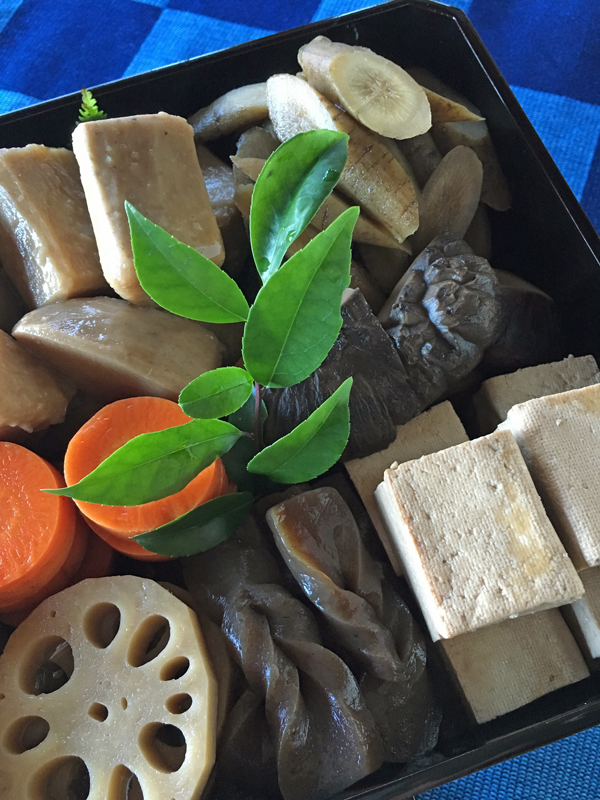 伊達巻:ベジタリアンの卵焼きの応用で、毎年色々工夫しているのですが未だ発展途上です。お豆腐、ひよこ豆の粉、南瓜、それに今年はエリンギで味を出してみました。
