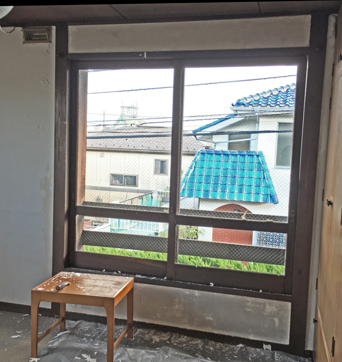 漆喰の壁の上に塗ったアクリルペイントの剥がしです。