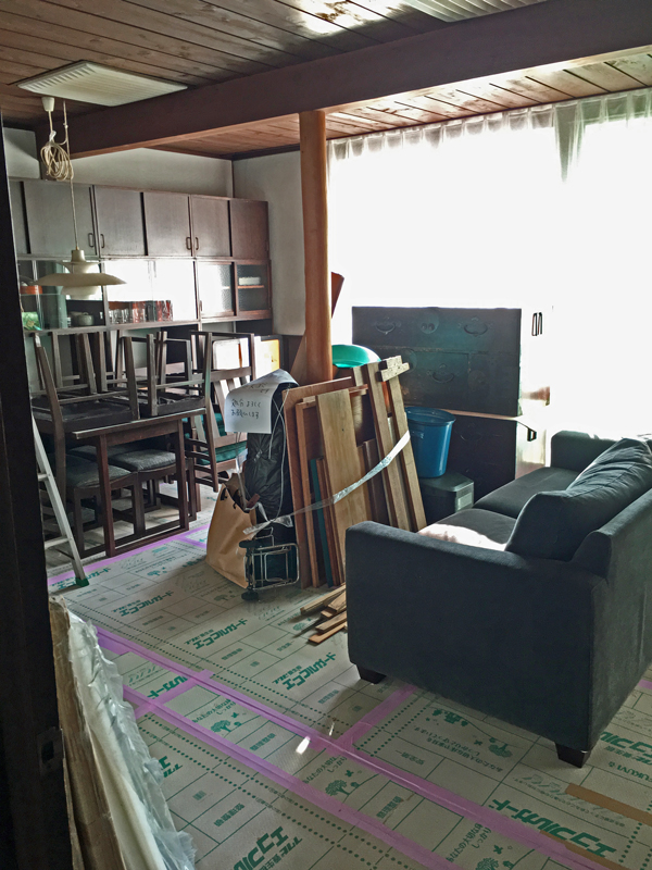 マスクをしないで見物していたので、工務店さんのお話を聞くうちに私は咳き込んでしまいました。50年分の埃のためです。