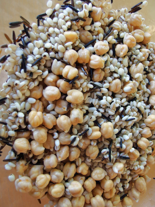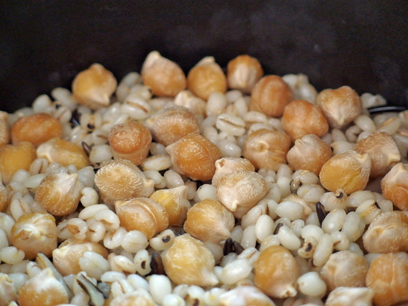 吸水した豆と雑穀です。