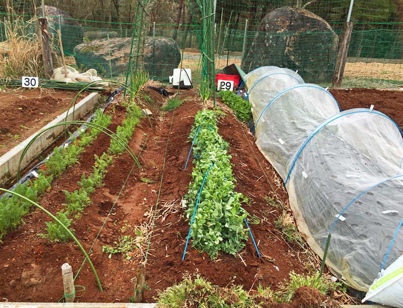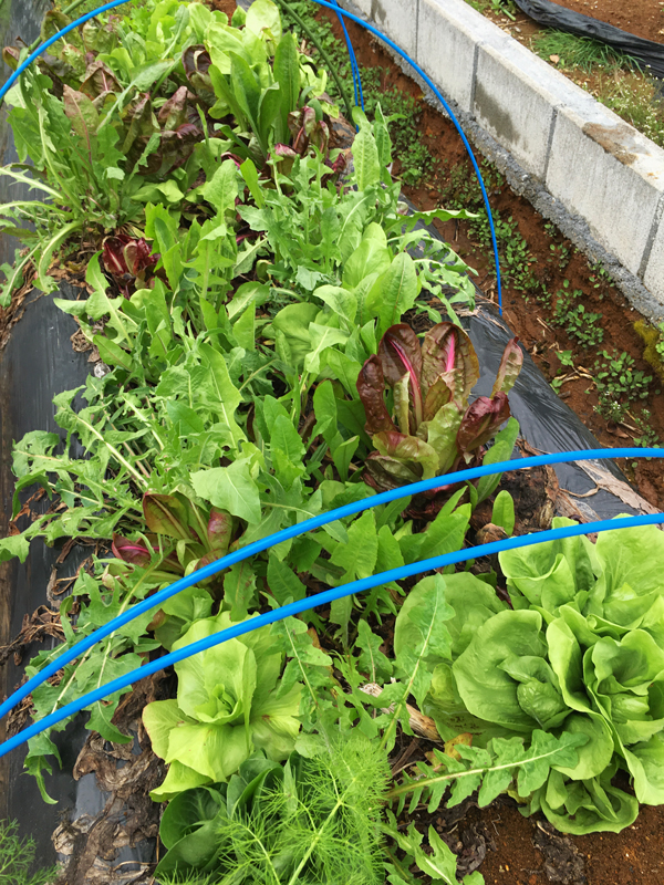 山の下に借りていた畑は約150坪だったので、1/10しかありません。でも作る野菜を選べば家庭菜園ならではの野菜やハーブを充分に楽しめます。ここで、この冬を越した野菜だけでも11種類もあるのです☆