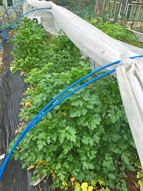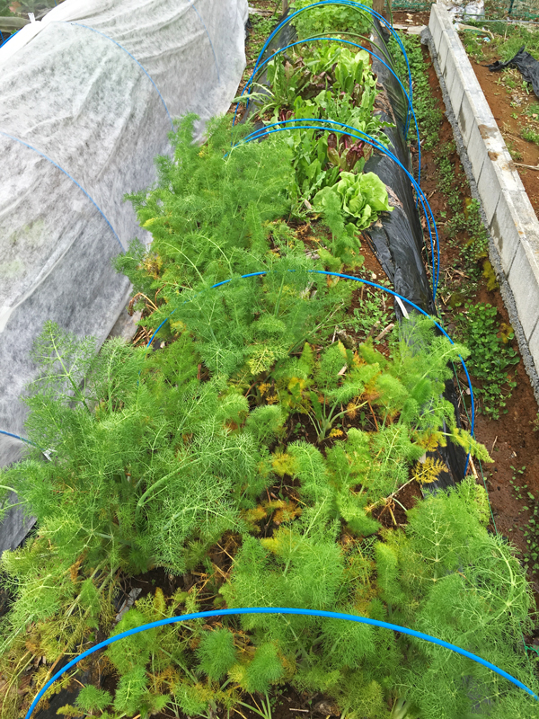 フェンネル。 山の下の畑では不織布のトンネルなしでも冬中元気なのですが、山の上のここではトンネルなしでは霜にやられてしまうのが分りました。