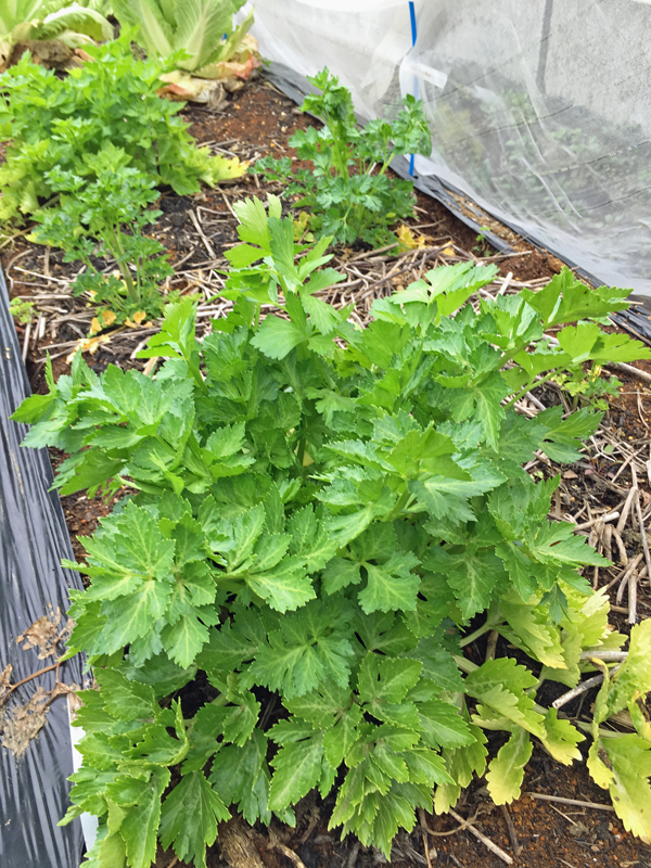 冬の間地面に張り付いていたセロリですが、急に背が伸びてきました。