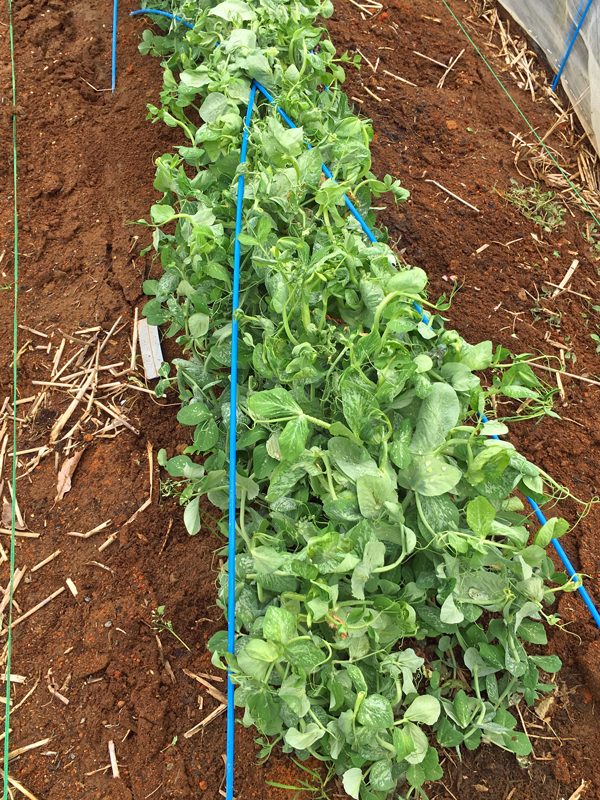 11月に播いたスナップエンドウ、早くネットをはらないとこんがらがりそうです。