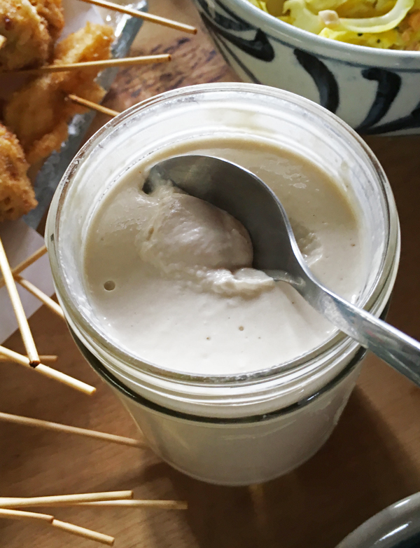私がマヨネーズ代わりに使っている、中近東の白胡麻のソース、タヒーナを添えました。