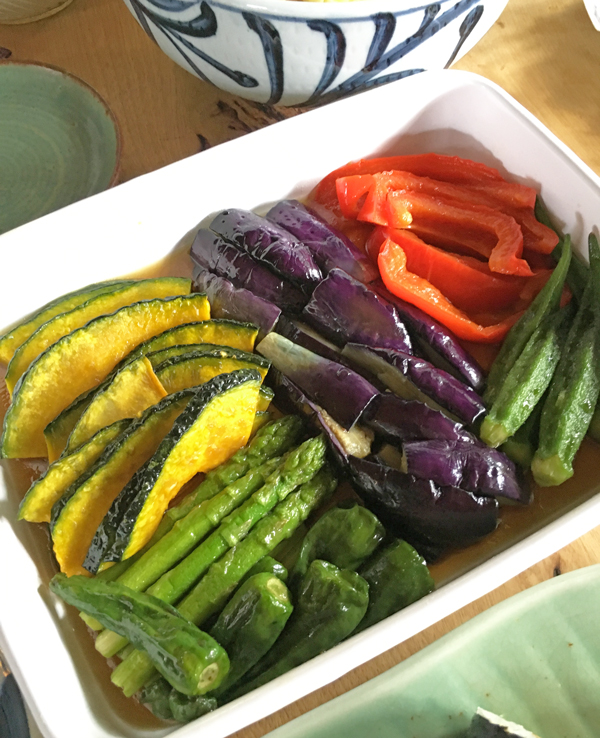 揚げ野菜の煮びたし、Tさん作です。Tさんは仕事を止めた後、障害のある子供達のためのボランティアや実家を国際交流のために開放したり、今からの夢ある暮らしのために農大で園芸を勉強中です。
