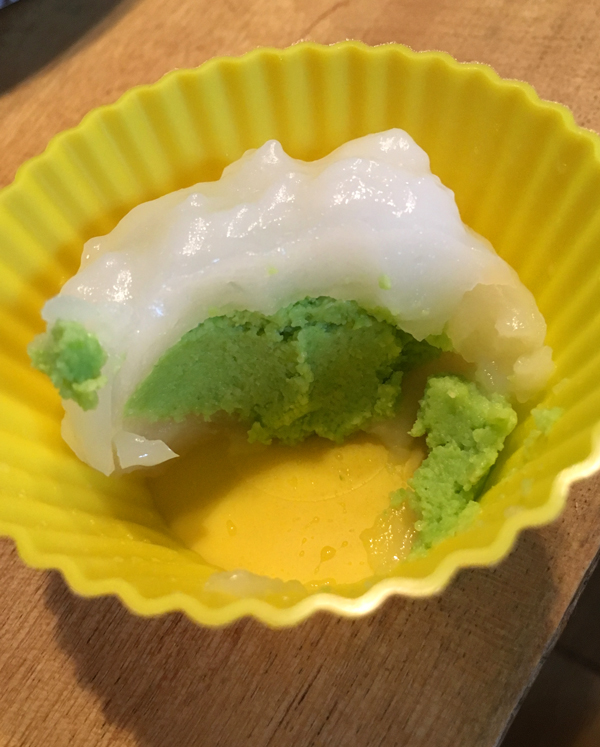 Miwaさんの手作りの水饅頭、中はこれもお手作りのズンダ餡です。ホットスポットの松戸在住で3.11の後苦しい時期があり、今ようやく元気になったMiwaさん、お心のこもったお菓子を本当にご馳走様。