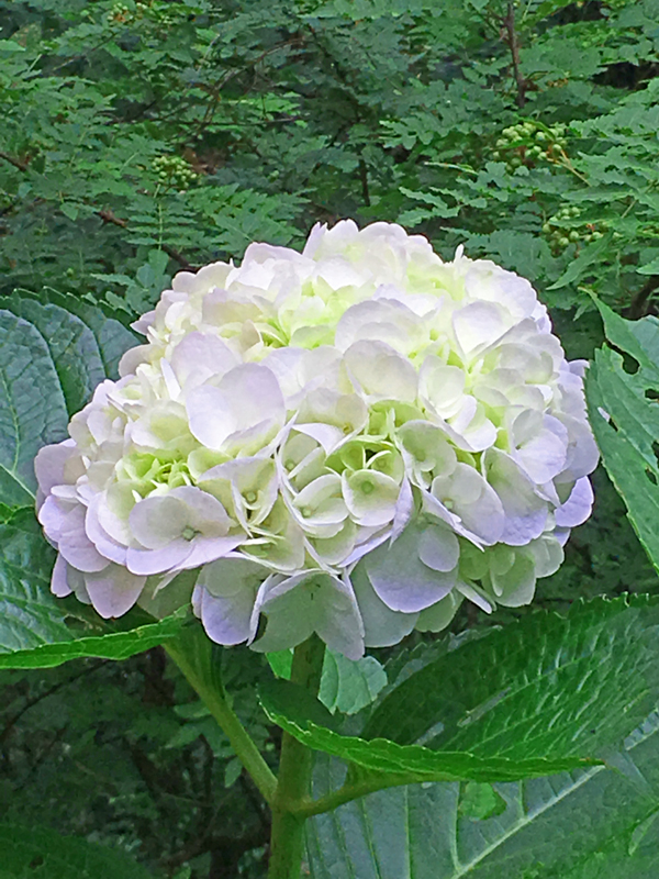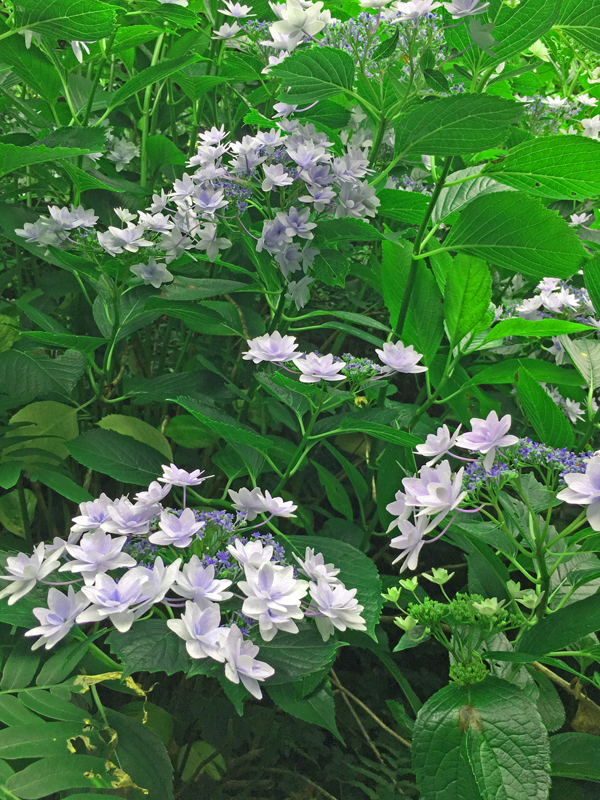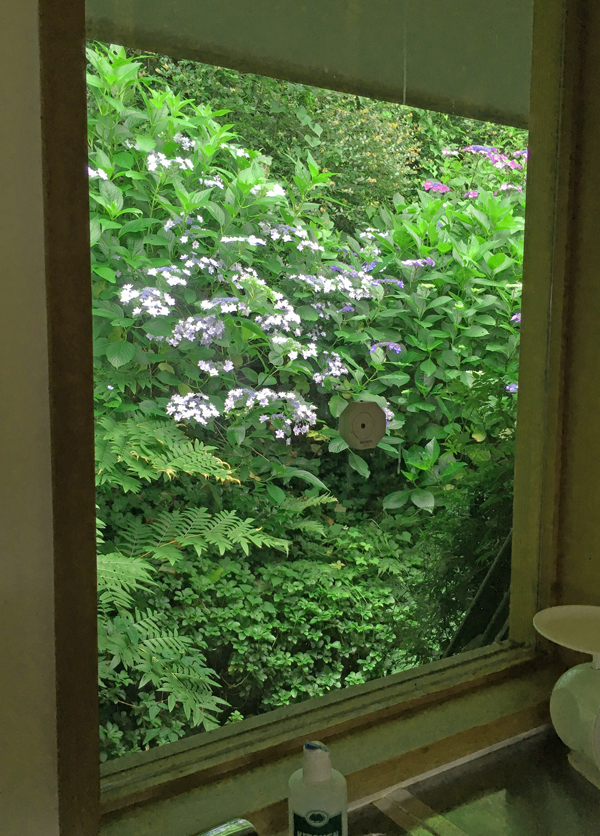 横浜の家の漆喰珪藻土の壁塗りを半分終えて、1週間ぶりに伊豆に帰って来ました。朝早くキッチンの窓の外を見ると、紫陽花が輝いて見えました。