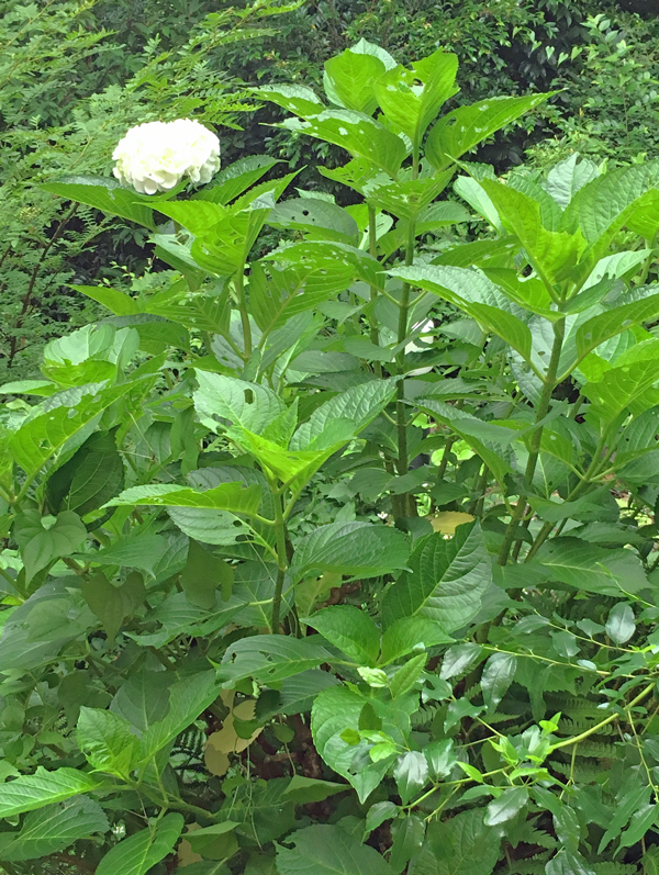 勝手口の下にある白い紫陽花は、昨年剪定の時期が遅くなって花芽を切ってしまったので、今年咲いたのはたった一輪です。