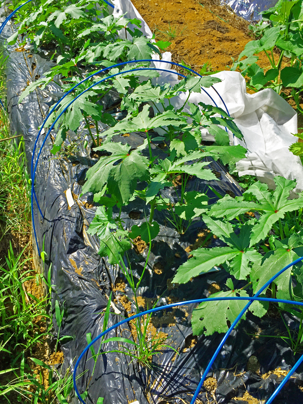 暑くなったのに保温の不織布をかけっぱなしで心配だった畝、