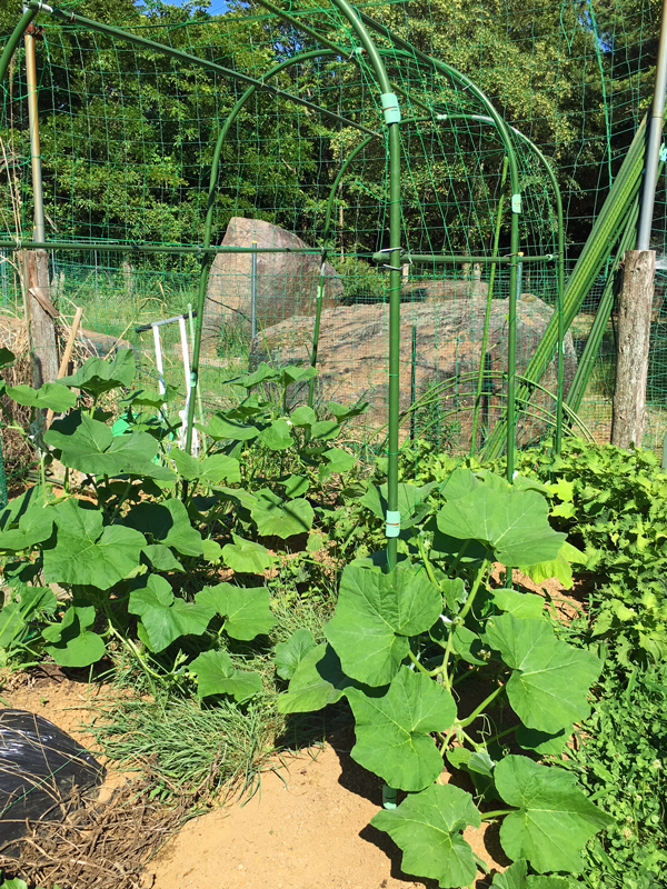 アーチ仕立てにするカボチャも元気にツルを伸ばしていました。