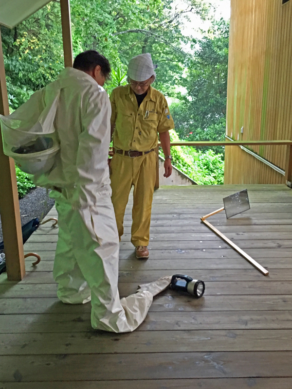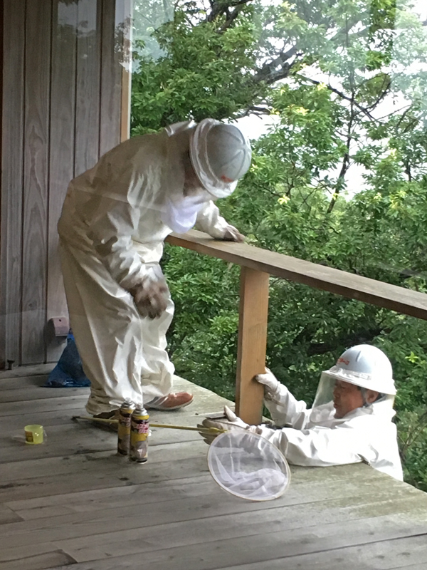 細かい手順や、それに必要な薬や用具の打ち合わせ・・・ 失敗して蜂が攻撃して来たら大変な事になるので、慎重に段取りと準備をなさいました。