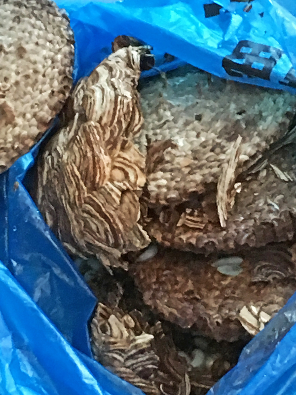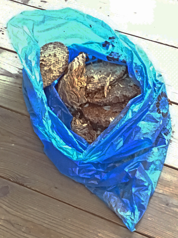 巣に噴射した強力な殺虫剤、撤去した巣を入れたゴミ袋も上がって来ました。