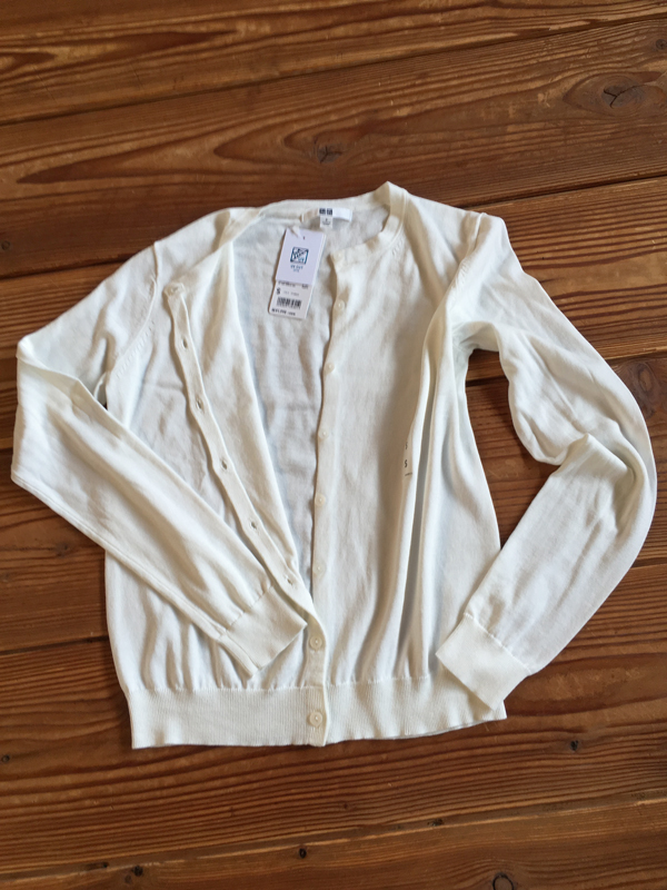 白いコットンのカーディガン、 マネキンの腰に巻いて陳列してあった最後の1点です。