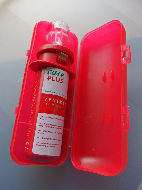 今回は、前から持っていた左の白いポゾン・リムーバーで吸引したのですが、右腕の後ろ側を刺されたので傷口に上手にあてられず、かつ左手でノズルを引き上げるのが難しくて、充分に吸引できなかったのです。