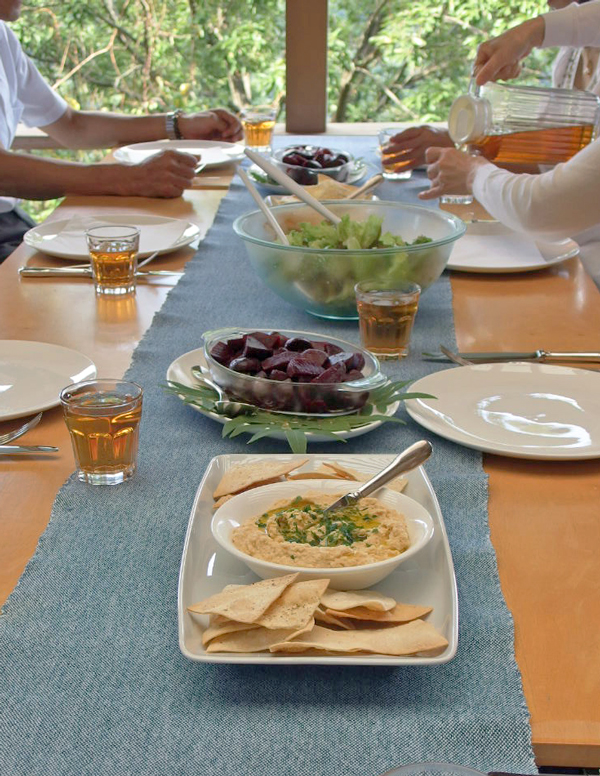 その翌日の昨日はお客様、台風一過の爽やかなお天気なので、蜂のいなくなったテラスで食事を、と、なりました。