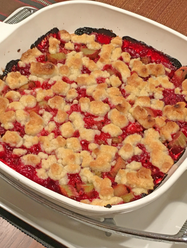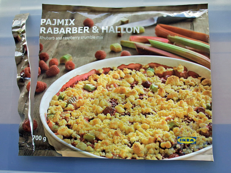ベースはIKEAの冷凍のルバーブとラズベリーのクランブルです。