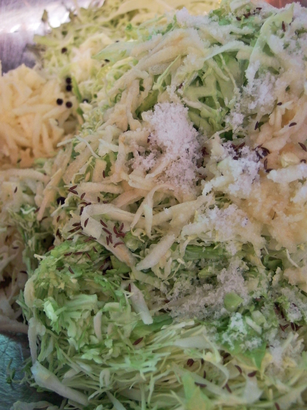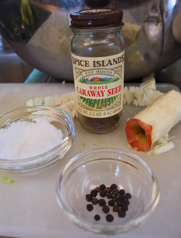 基本材料はキャベツと塩ですが、カリフォルニアばあさんのレシピには林檎がはいります。