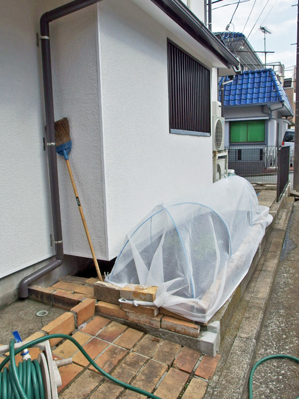 紗をかけました。都会には鹿や猪はいないけれど、カラスや猫に注意です。