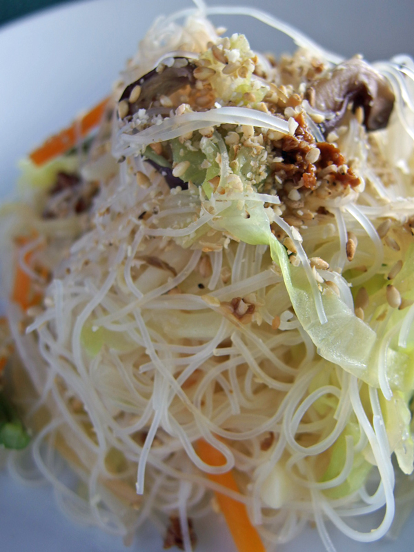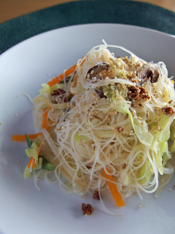 出来上がったビーフンを自分のおに取り分け、白胡麻とセイタン・ミンチ(生麩の醤油漬け)をふって頂くのが私好みの食べ方です。