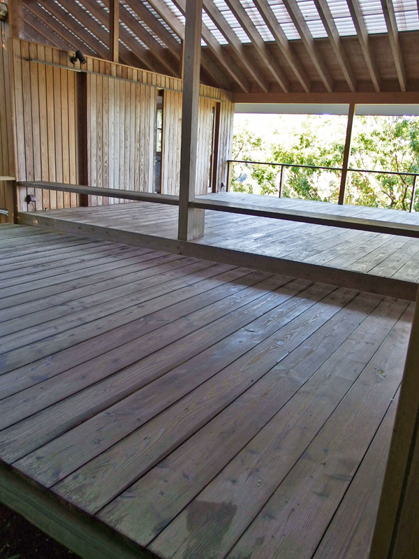 テラスは上から順に洗って、最後に床を洗い、テニスコートの水を寄せるアクアレーキで水を切ります。台風の吹き返しの風で、直ぐに乾いて、こんなに気持ちよくなりました。