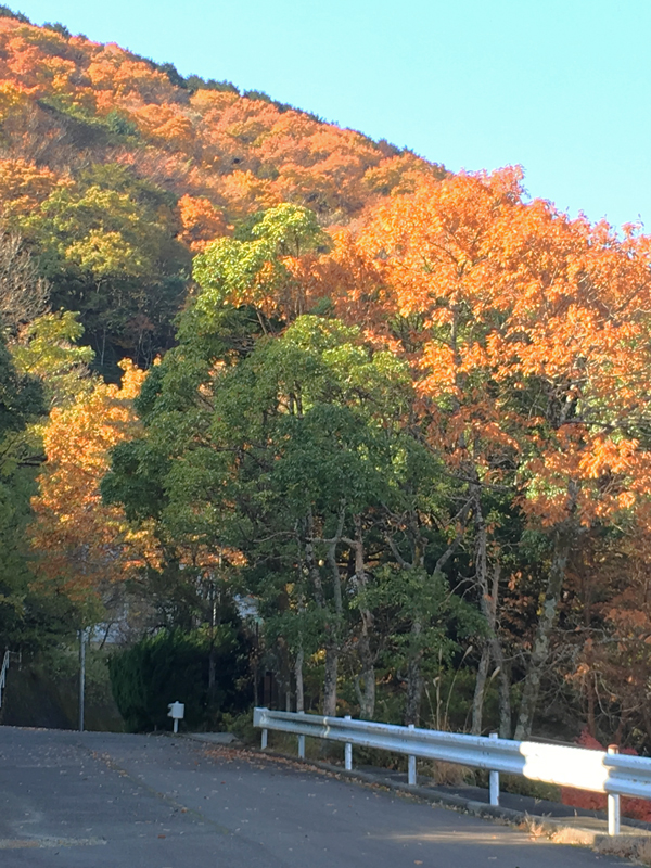 入口を出ると、目の前の山が紅葉の真っ盛りでした。