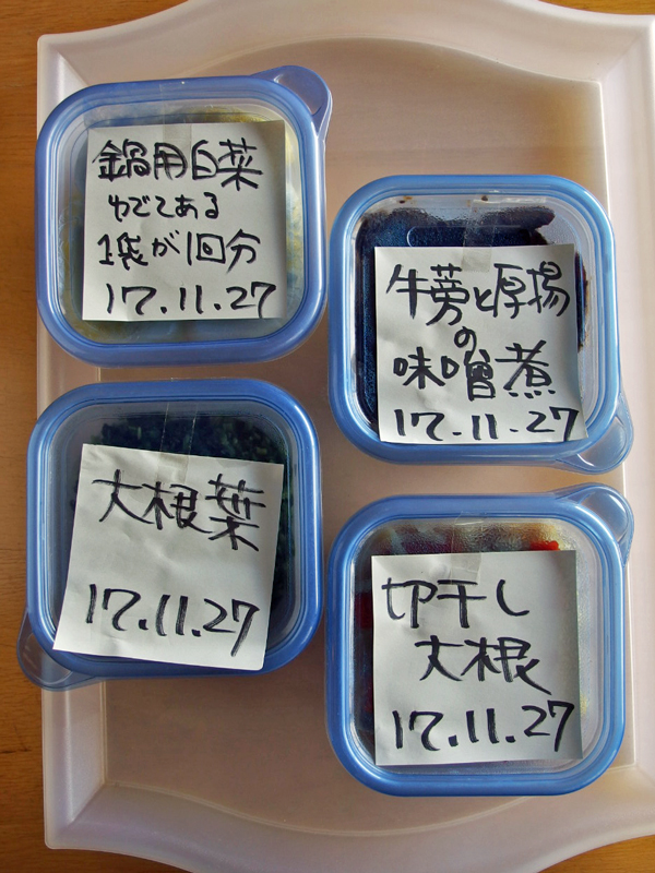 白菜は1回分ずつポリ袋に入れて空気を抜いて、日持ちがよくなるようにしてみました。