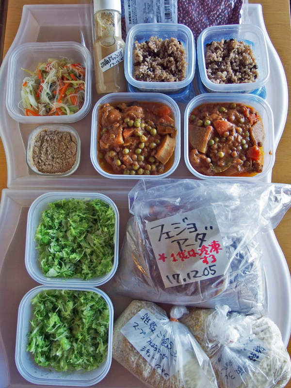 私が横浜へ行ったり、Mさんが伊豆に来たりの時は、料理する時間があまりないので、基本的に時間に余裕のある時に伊豆で料理して冷凍したり、作りたてを冷蔵便で送る事が多くなっています。