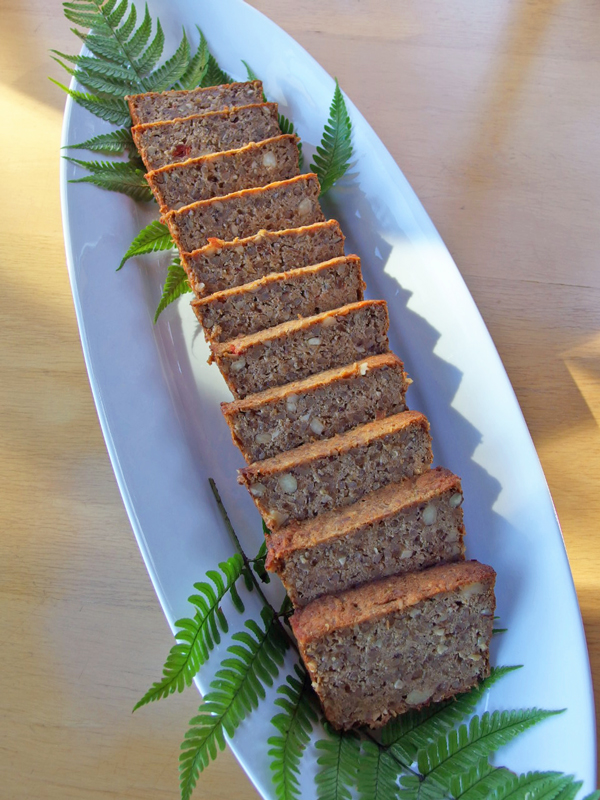 お豆腐、タカキビ、アーモンド、タマネギ、が主な材料。 見た感じも、味も、ミートローフそっくりなのです。