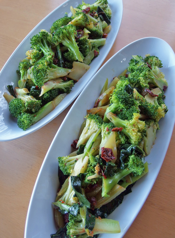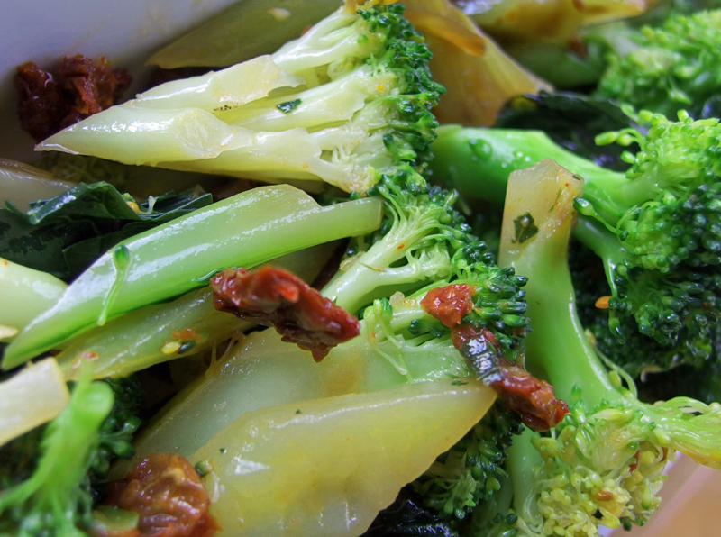 固めに茹でたブロッコリーに、ドライトマトのオイル漬け、Tempelo Mineiro 、オイルをふって和えただけです。