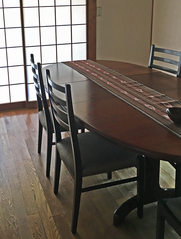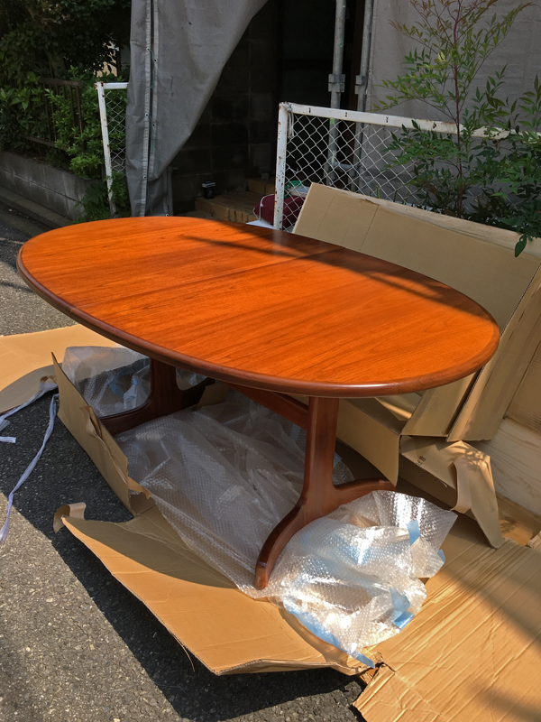 昨年の夏横浜の家に到着した時のテーブル、4人がけで、伸ばすと8人がけになります。