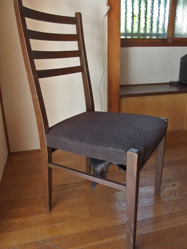 椅子はインテリアデザイナーだった叔父がデザインした、これも50年以上前のものです。今回この椅子も修理して張り替えました。