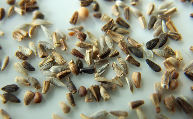 種をお皿にあけてよく見ると、このように色々な種がミックスされています