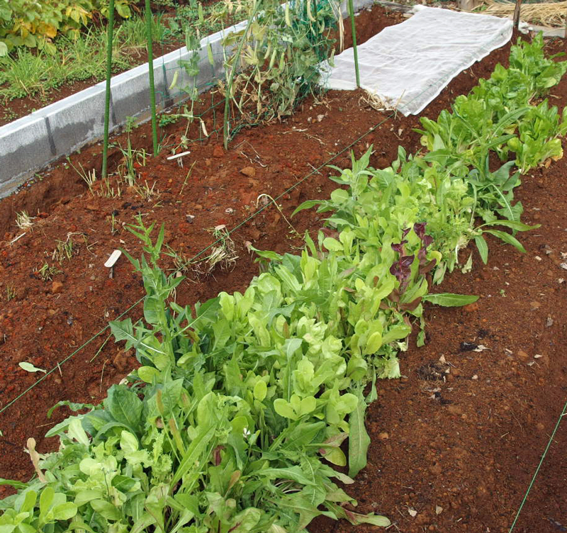 先日播いた向こうのサラダミックスがベビーリーフになってくれるでしょうか?