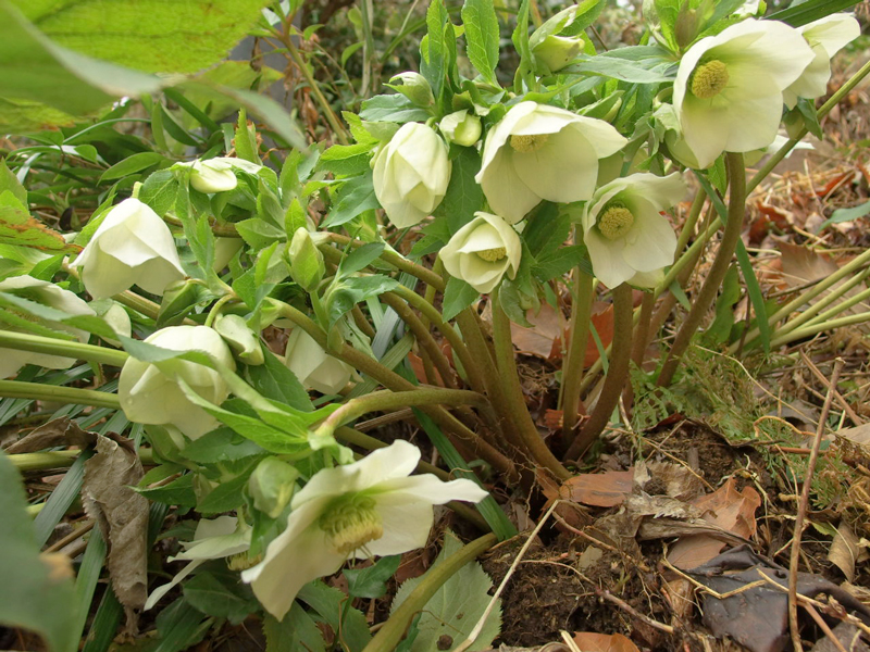 いつ頃からか、クリスマスに咲きだすクリスマスローズが、早春に咲くようになりました。