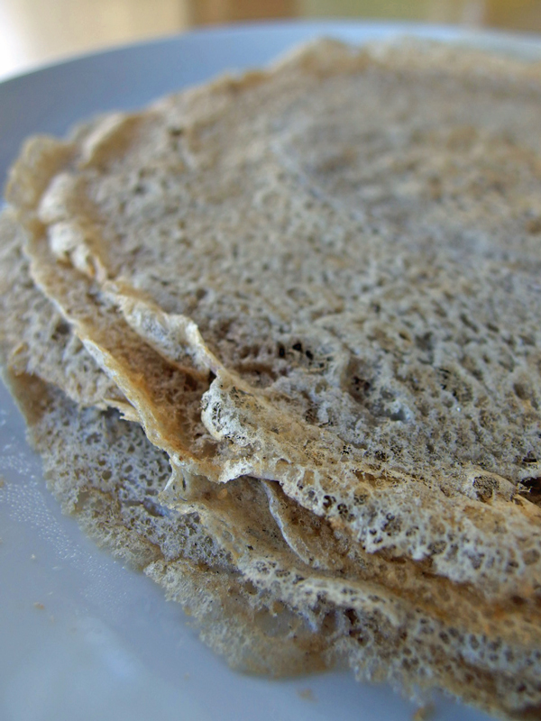 上記の分量で、亜麻の実(フラックス・シード)の代わりに卵1個を使えば、普通のガレットになります。